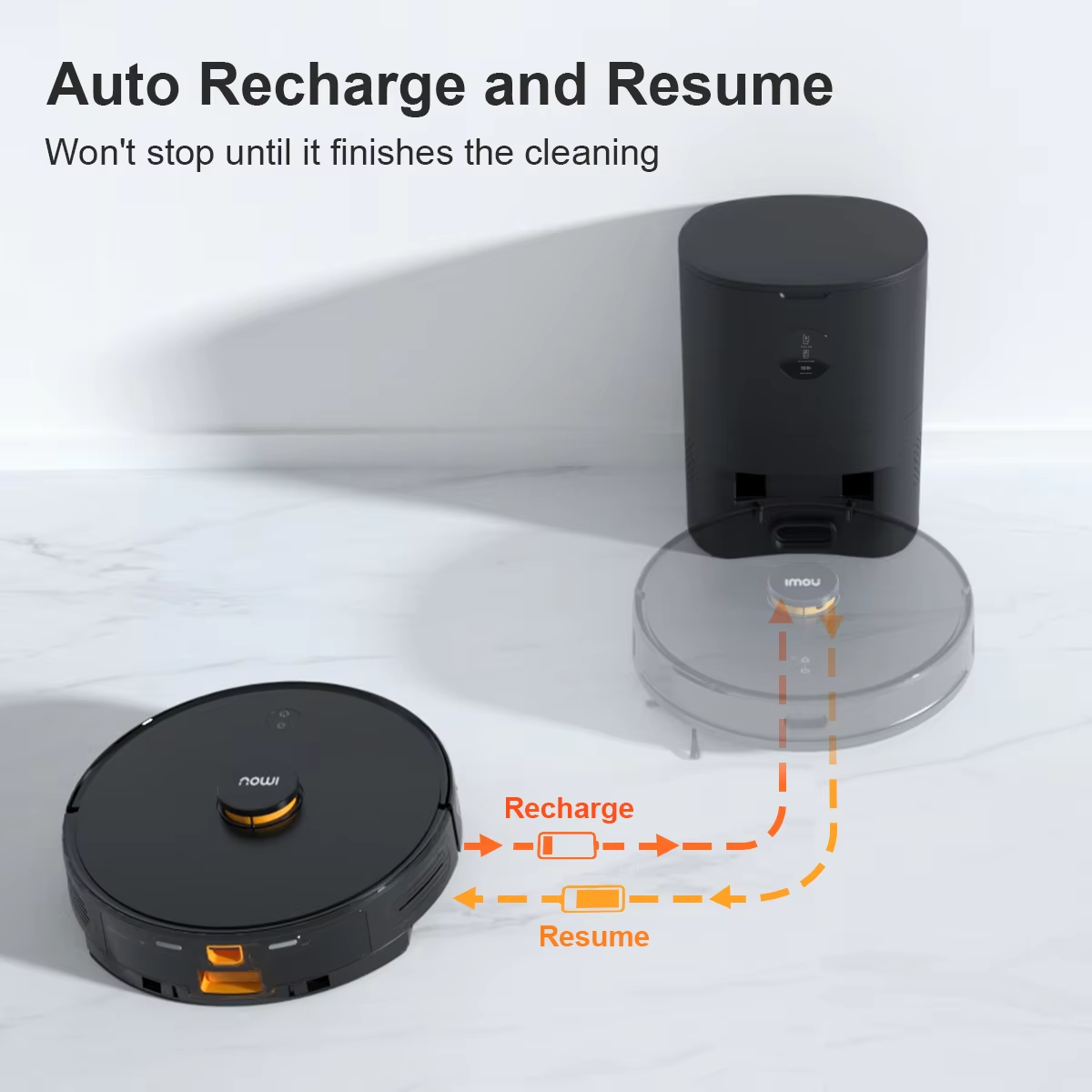 ✔️ 배터리가 부족하면 자동으로 충전 후, 중단한 지점에서 청소를 이어갑니다.